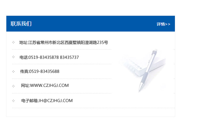 地址:常州市新北區友邦商務大廈1幢16、17層  電話:0519-85101652  傳真:0519-85112595  郵編:213022  網址:www_cz-jiayue_cn.cn991.com  郵箱:xiajifengaa@163.com
